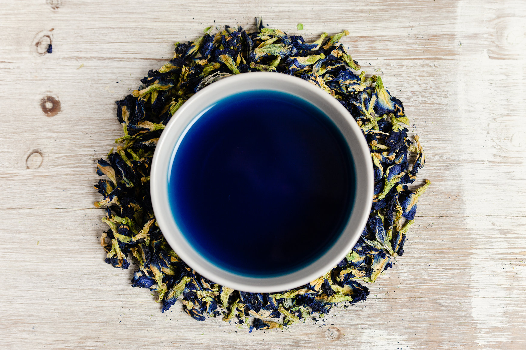 One of the most distinctive characteristics of butterfly pea flower tea is its natural colour which changes when the pH balance change. A deep blue will turn purple with the addition of lemon juice, turning a deeper shade of purple the more lemon juice is added. By adding Hibiscus leaves the tea will turn a bright red colour. Amazing enough it will not stain your teeth , tongue or clothes.